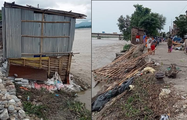 रतुवा खोलामा आएको बाढीबाट १३ घर विस्थापित