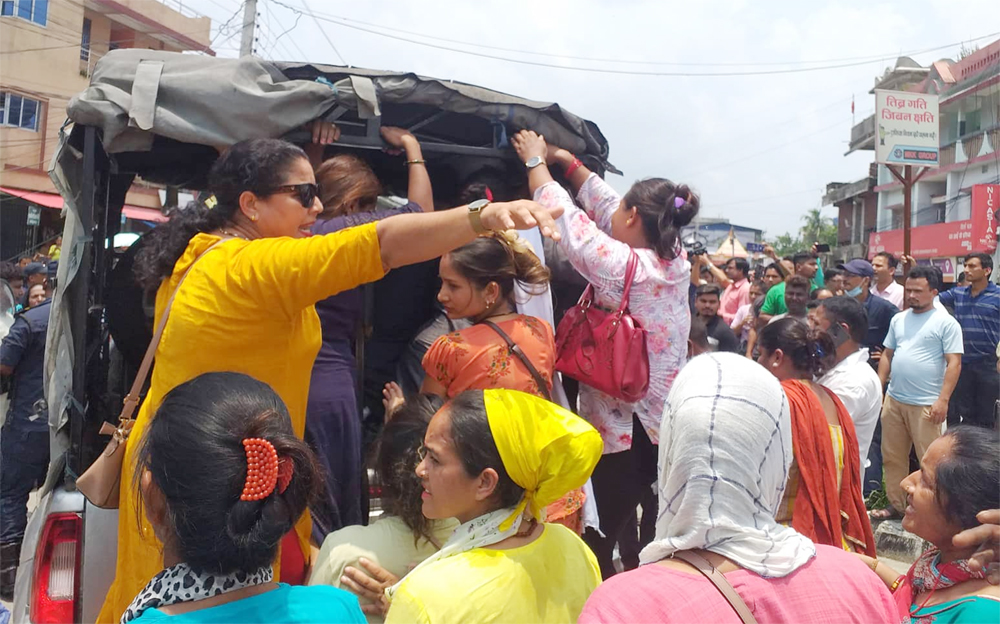 त्यसपछि झन् आक्रोशित देखिएका ब्यवसायीहरुले ‘जनतामारा मेयर राजीनामा दे’ ‘जनतामारा उपमेयर राजीनामा दे’ ‘पुलिस प्रशासन मुर्दाबाद’, भन्दै नारा लगाए । प्रहरीको ज्यादतीप्रति निकै आक्रोशित बनेका महिला ब्यवसायीले ‘महिलामाथि किन दमन गरेको ?’ भन्ने प्रश्न गर्दै भने–‘तपाइहरु मेयरको गोठालो गर्दै हुनुहुन्छ, भोली तपाइहरुलाई पनि लात हान्छन् ।’ ब्यवसायीका नेतृत्व पक्राउ पछि आन्दोलन मत्थर हुने प्रहरीको आंकलन विपरित ब्यवसायीहरु पुनः धर्नामा बसेर विद्युत मिटरका लागि पटक–पटक गरिएको निवेदनका विषयमा जानकारी गराए ।
