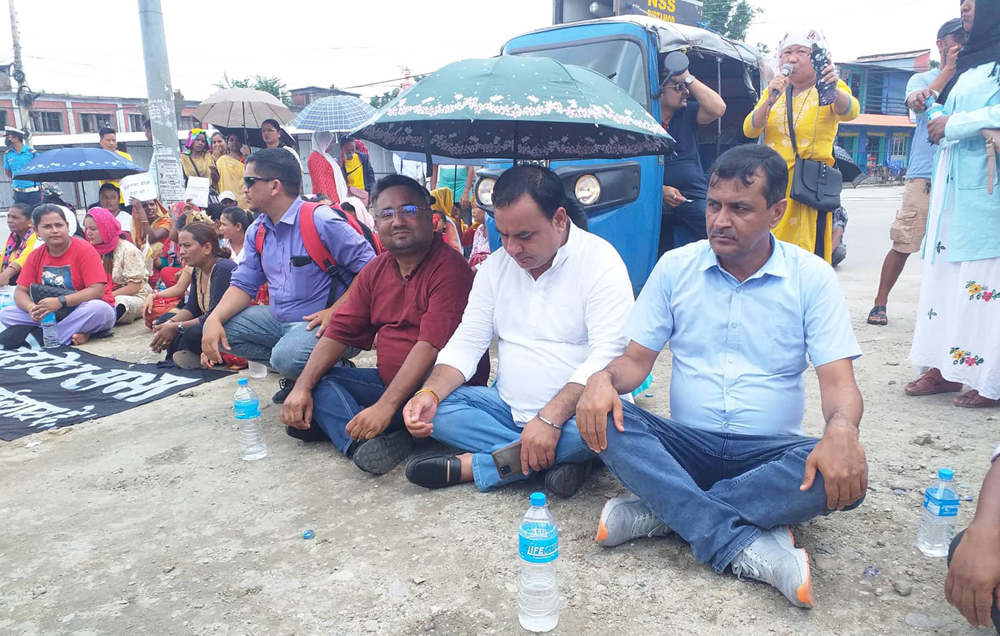 केहीछिन धर्नामा बसेपछि कृषि उपज बजार विकासमा ब्यवसाय गरिबस्ने गरिमा राईले मन्तब्य राख्दै मानवको मौलिक अधिकार हनन् भएको बताइन् । ‘भोट माथ्दा के भन्दै आउनुभएको थियो ?’ उनले मेयर र उपमेयरप्रति लक्षित गर्दै भनिन्–‘पदमा पुगेको एक महिना नपुग्दै हिजो भनेका कुरा विर्सनुभयो ? पीडित, एकल महिलाका माग सम्बोधन गर्ने आश्वासन कहाँ गयो ? एक महिना नपुग्दै तपाइले आफू चढेको पहिलो सिढी भत्काउनुभयो ।’