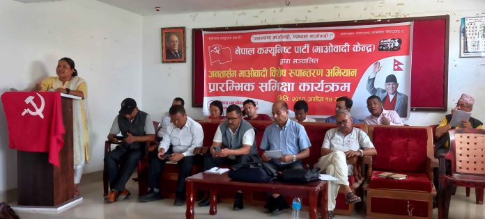 बिर्तामोड १४ असाेज । नेकपा माओवादी केन्द्रले सञ्चालन गरेको ‘घरघरमा माओवादी जनजनमा माओवादी’ नामक विशेष रुपान्तरण अभियानमा तोकिएको जिम्मेवारी पूरा नगर्ने नेतालाई कारबाही गरिने भएको छ ।माओवादी केन्द्रका सचिव चक्रपाणी खनाल (बलदेव) ले जिम्मेवारी पाएको ठाउँमा गएर काम नगर्ने नेतालाई जिम्मेवारीबाट मुक्त गर्ने बताएका हुन् ।