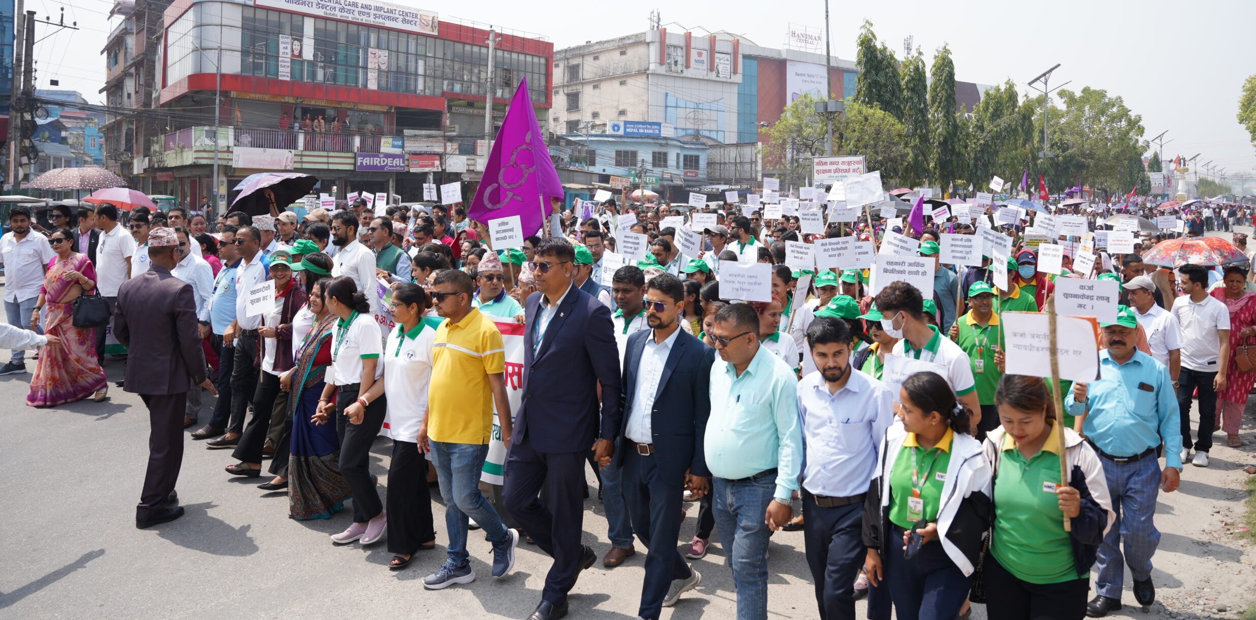 यसअघि मुक्तिचोकको चारैतिरबाट महानन्द चौक, भगवान चौक, बिर्तावजार र पूर्वतर्फ बसपार्क क्षेत्रबाट विभिन्न २९ वटा नारा सहितको प्लेकार्ड र झाँकी सहितको र्यालीले मुक्तिचोक परिक्रमा गरी कार्यक्रम स्थलमा पुगेको थियो।