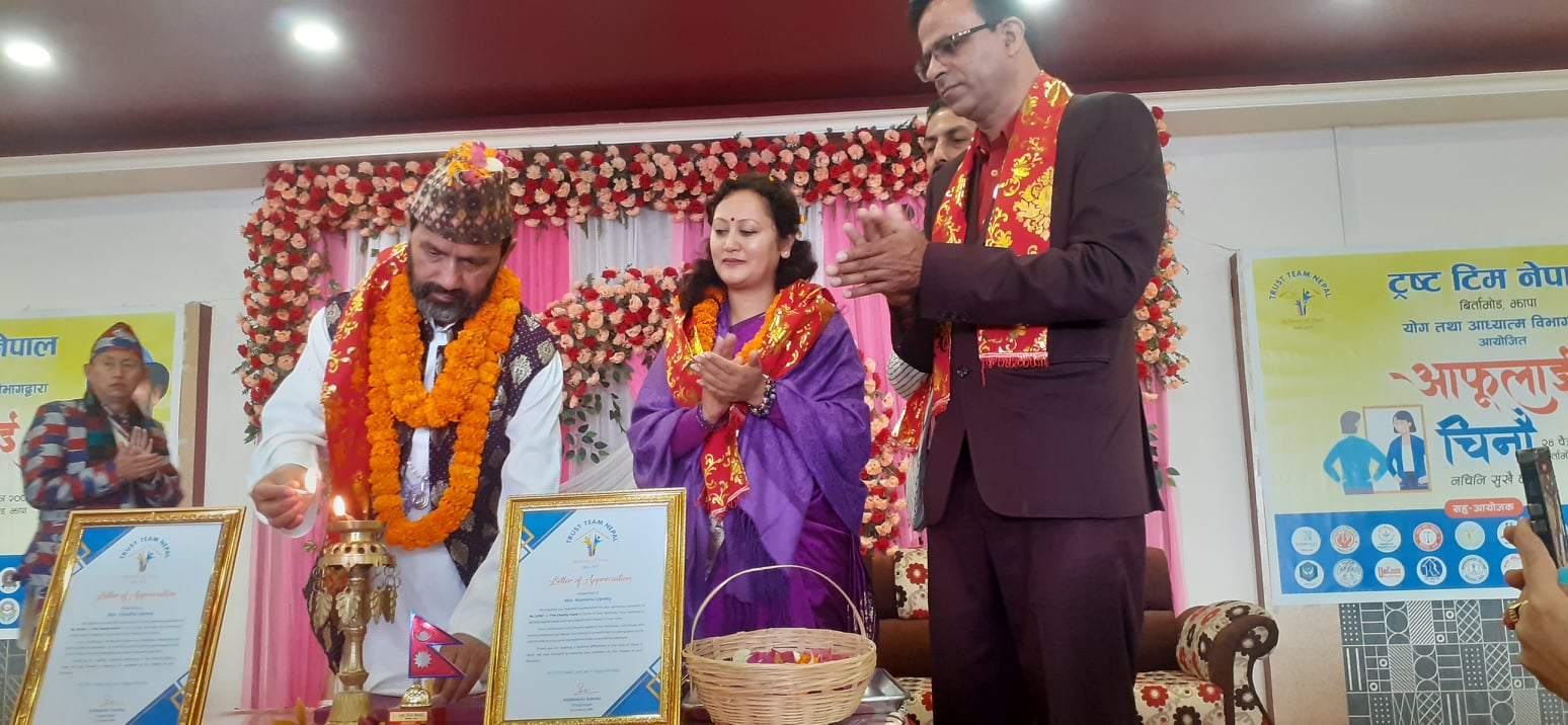 योग, साधनाले जीवनलाई उर्जामय बनाउने अभ्यास उदाहरण प्रस्तुत गरिएको थियो । ट्रष्ट टिम नेपालका अध्यक्ष खिबराज दाहालको अध्यक्षतामा सम्पन्न सो कार्यक्रमको सञ्चालन महासचिव सागर रिजालले गरेका थिए । विश्वले मानेका व्यक्तिहरु र आफूहरुको शारिरीक रुपमा फरक नरहेको उल्लेख गर्दै विकाशानन्दले जीवनलाई सदैव उर्जाशिल बनाउनका लागि आफूमा पनि केही छ भन्ने कुरा बुझ्न जरुरी रहेको बताए ।
