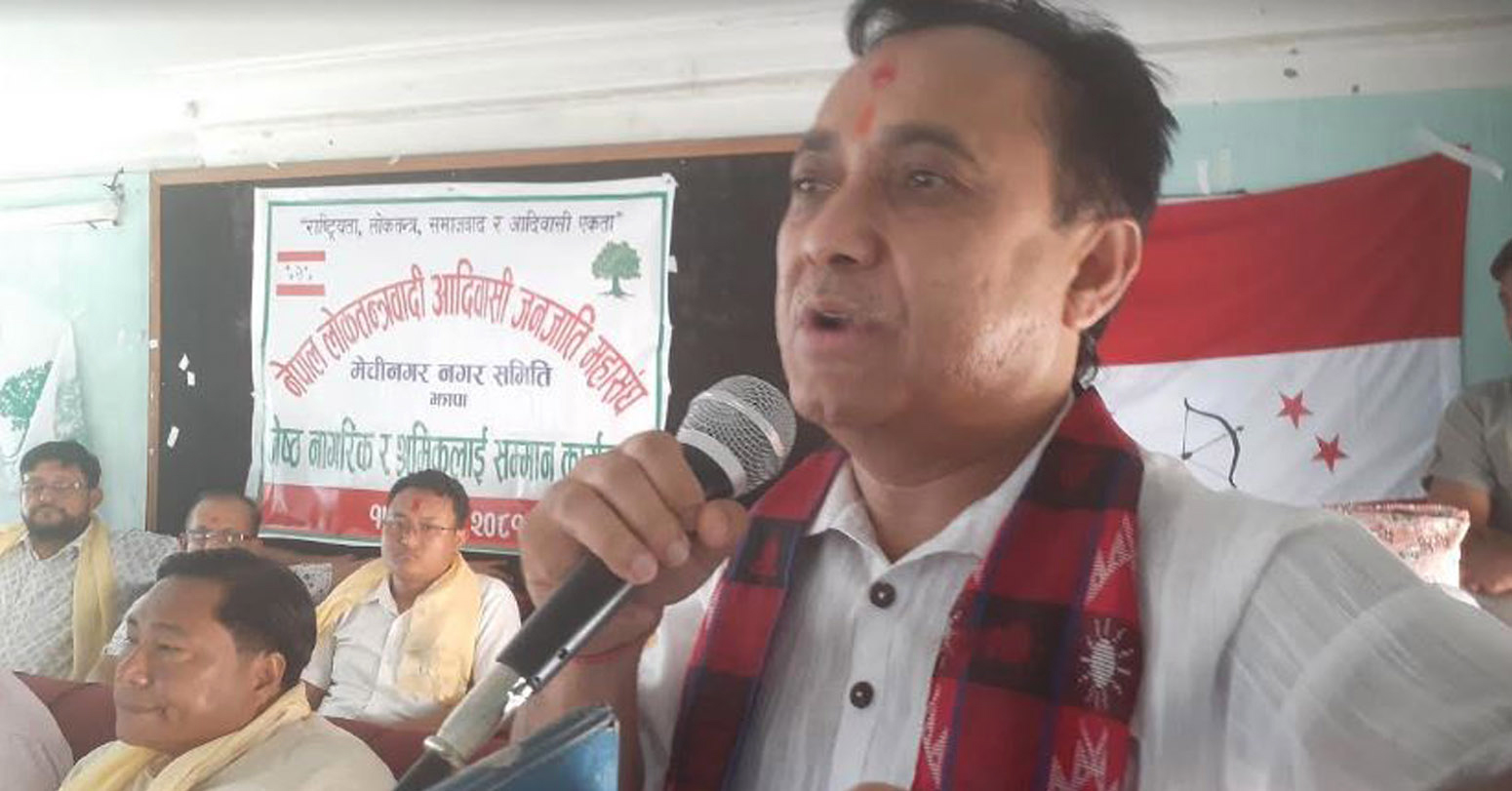 १३३ औँ अन्तर्राष्ट्रिय श्रमिक दिवसमा नेपाल लोकतन्त्रवादी आदिवासी जनजाति महासंघ मेचीनगर नगर समितिद्वारा आयोजित ज्येष्ठ नागरिक तथा श्रमिक सम्मान कार्यक्रमलाई बुधबार गृहनगर धुलाबारीमा सम्बोधन गर्दै उनले भने, ‘कांग्रेसले चुनाव हारेको हो, नयाँ हौं, चुनाव जित्छौं भनेर हल्ला गर्नेहरुको जमानत नै जफत भयो ।’