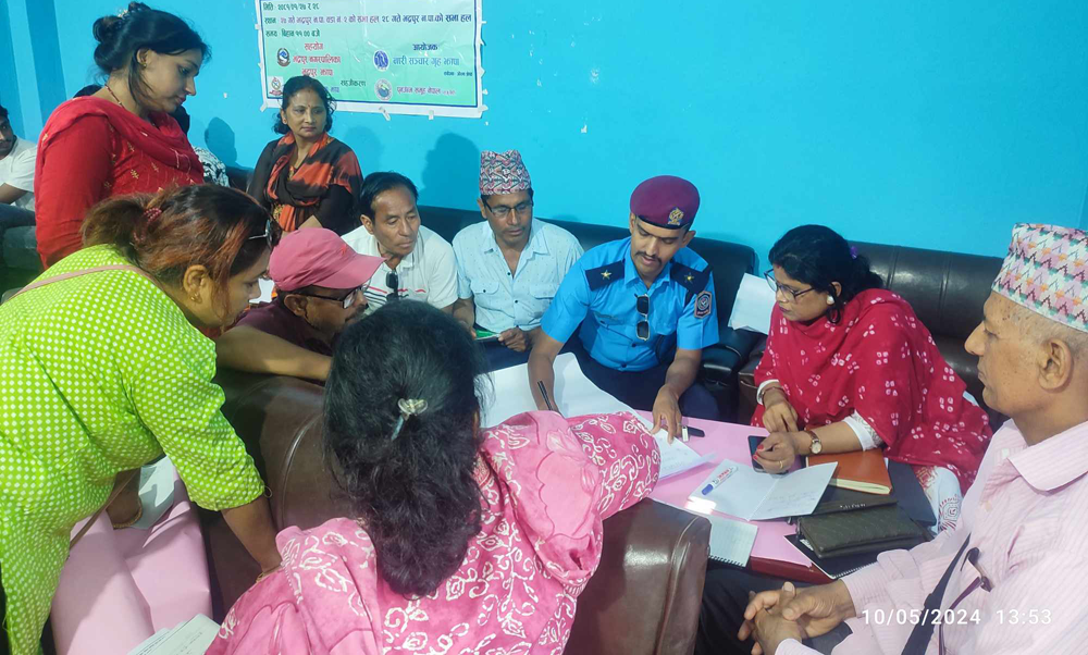 नारी सञ्चार गृह झापाकी अध्यक्ष रेजिना गौतमको अध्यक्षतामा सम्पन्न गोष्ठीमा कार्यक्रम संयोजक तथा नारी सञ्चार गृहकी सहसचिव जोस्ना श्रेष्ठले सञ्चालन गरेकी थिइन भने जिल्ला प्रहरी कार्यालय झापा अन्तरगत इलाका प्रहरी कार्यालय जलथलका इन्चार्ज प्रहरी सहायक निरीक्षक ओमराज पौडेल, पुर्नजन्म समूह नेपालका राजु गिरी, सहजीकरण नारी सञ्चार गृह झापाकी संस्थापक अध्यक्ष सावित्रा दाहाल र भीमा शिवाकोटीले सहजीकरण गरेको इशा श्रेष्ठले बताइन ।
