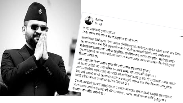 झापा । काठमाडौं महानगरपालिकाका प्रमुख बालेन शाहले वर्तमान सरकारले तत्कालीन केपी ओली नेतृत्वको सरकारलाई कारबाहीको दायरामा ल्याउनुपर्ने माग गरेका छन् ।