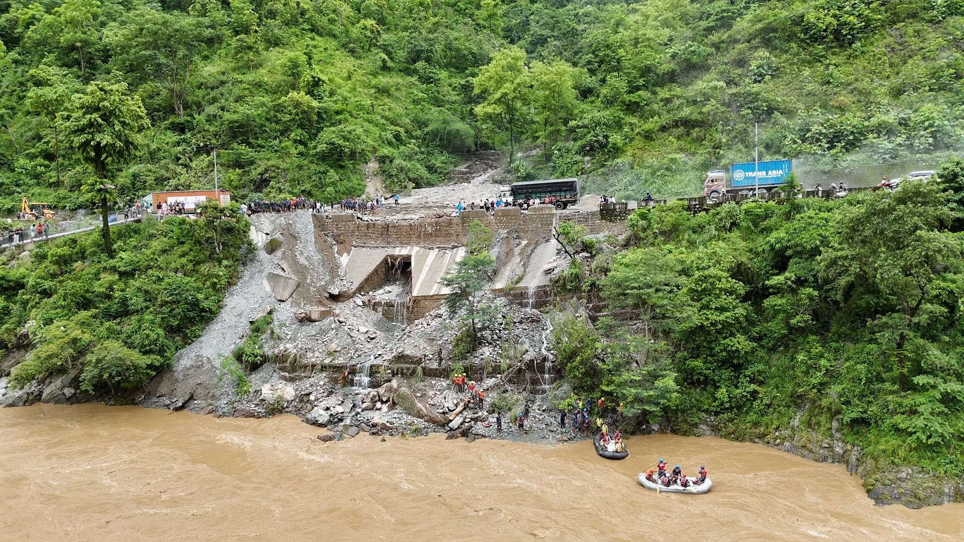 चितवनको नारायणगढ–मुग्लिन सडकमा पहिरोबाट वेपत्ता खोज्न गोताखोर परिचालन