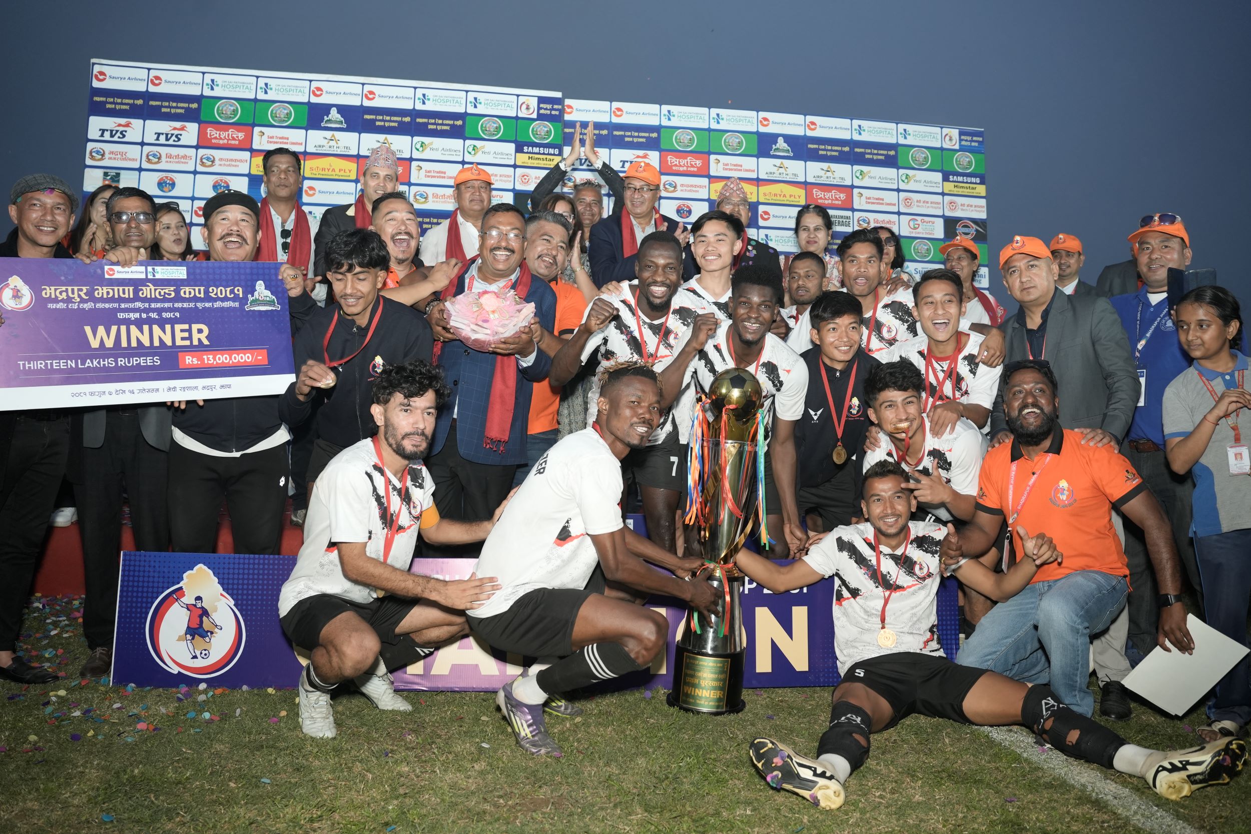 जितसँगै भद्रपुर ब्लेजर्सले नगद १३ लाख, मेडल, ट्रफी र प्रमाणपत्र पाएको छ । भद्रपुरस्थित मेची रंगशालामा शुक्रबार भएको फाइनल खेलमा अर्को झापाली टोली झापा ११ एफसीलाई २–० गोल अन्तरले पराजित गर्दै भद्रपुर ब्लेजर्सले उपाधि चुमेको हो ।