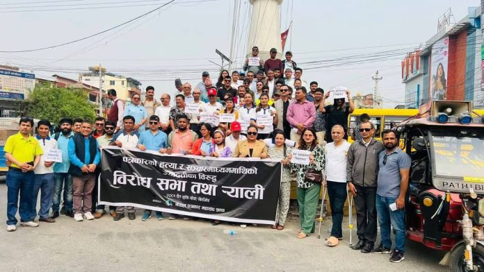 सोही क्रममा झापामा पनि नेपाल पत्रकार महासंघ झापाको नेतृत्वमा झापाली पत्रकारहरु सडकमा उत्रिएका छन् । विभिन्न नारासहित बिर्तामोडमा निकालिएको विरोध र्यालीमा पत्रकारसहित अन्य विभिन्न अधिकारवादी तथा पेशागत संघ संस्थाको समेत उपस्थिति रहेको थियो ।