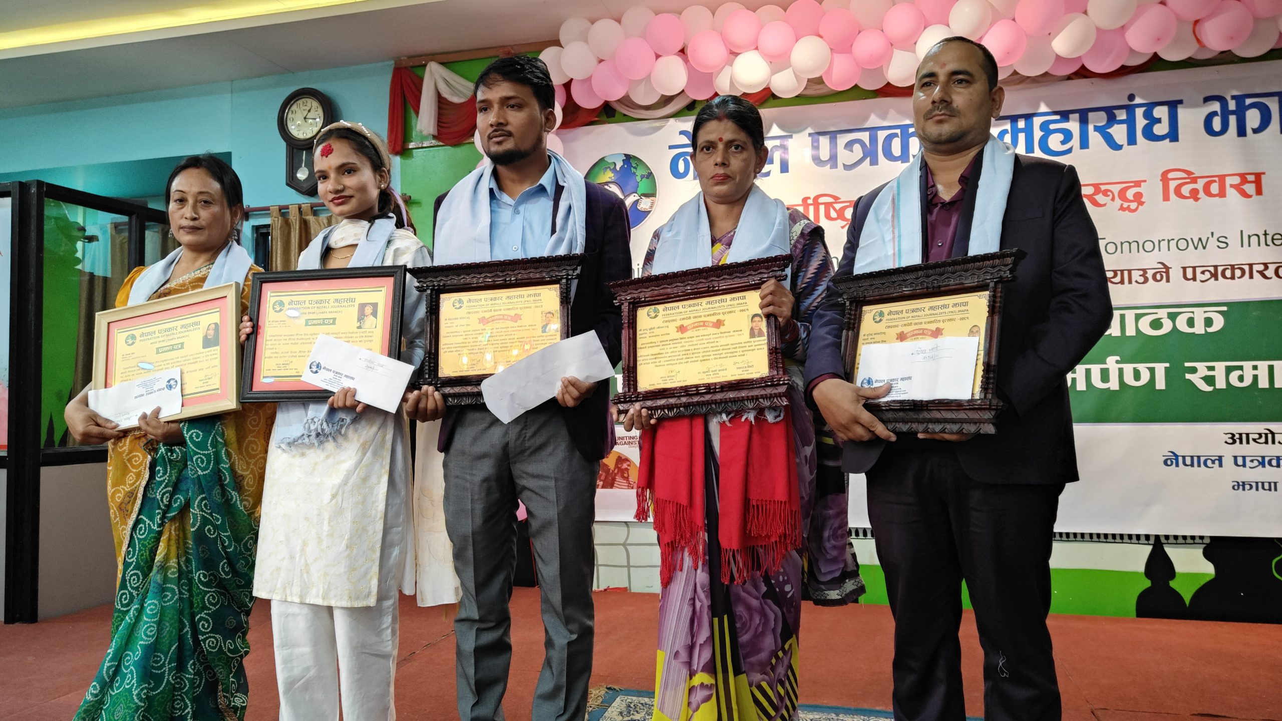 ५० हजार ५ सय ५५ रुपैयाँ पुरस्कार राशिको उक्त पुरस्कार प्रेस काउन्सिल नेपालका अध्यक्ष डा.कुमार शर्मा आचार्यको प्रमुख आतिथ्यमा बिर्तामोडमा आयोजित कार्यक्रमकाबीच आज बितरण गरिएको हो ।