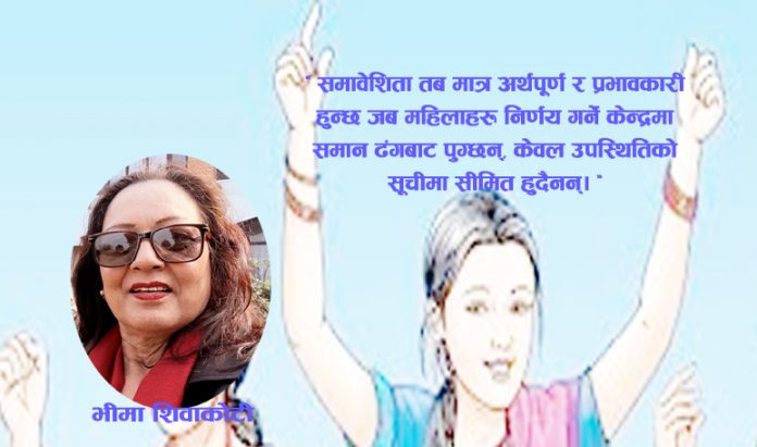 समावेशिता तब मात्र अर्थपूर्ण र प्रभावकारी हुन्छ जब महिलाहरू निर्णय गर्ने केन्द्रमा समान ढंगबाट पुग्छन्, केवल उपस्थितिको सूचीमा सीमित हुँदैनन्।