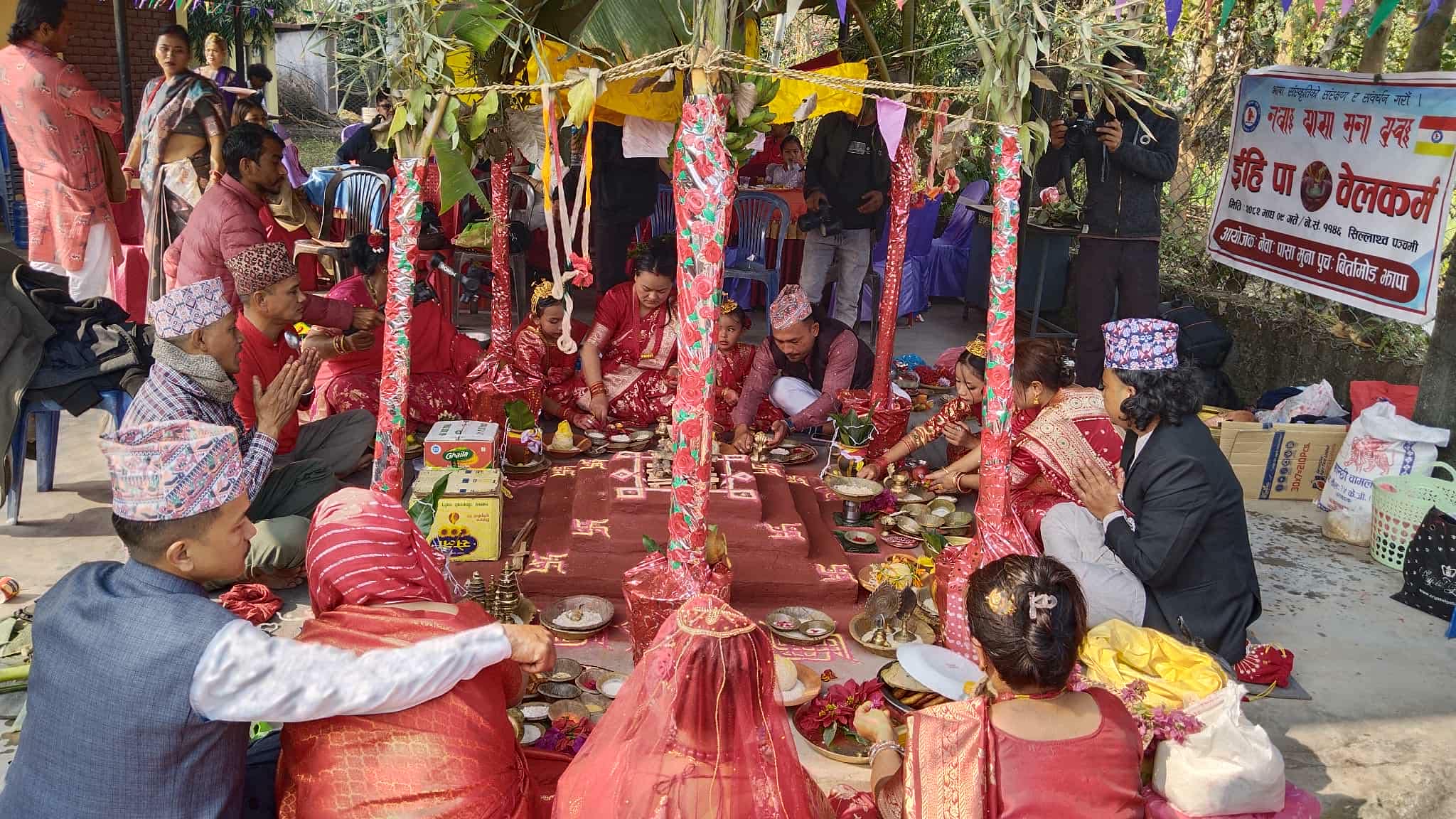 नेवार जातिको संस्था नेवा पासा मुना पुच : बिर्तामोडको आयोजनामा अर्जुनधारा ६ स्थित भिमसेन मन्दिरमा चार जना कन्याहरुको सामुहिक बेल विवाह गरिएको हो।