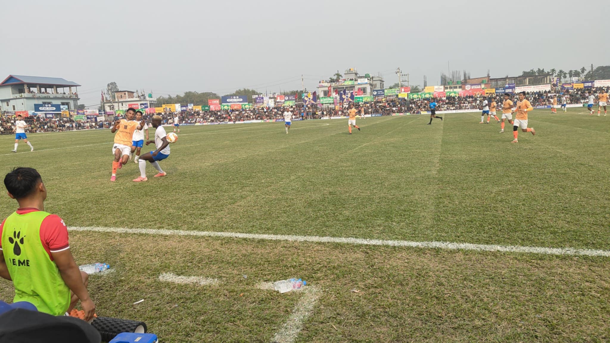 यी सबै दृश्य देखिन्छ– झापाको डोमालाल रंगशालामा । सोमबार सातौं संस्करणको झापा गोल्डकप प्रतियोगिता सम्पन्न भएको छ । यो पटकको गोल्डकपमा विभागीय टिमसहित नेपाल, भारत, भूटान र मलेसियासहित १० वटा टिमले प्रतिष्पर्धामा थिए ।