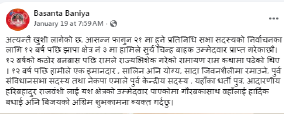 क्षेत्र नं. ३ मा आदिवासी समुदायबाट एमाले नेता हरि राजवंशीले प्रतिनिधिसभा निर्वाचन २०८२ का लागि टिकट पाएपछि एमालेका युवा नेता बसन्त बानियाँले खुशी व्यक्त गरे । उनको यो खुशी आफ्नै चुनाव चिन्ह्रमा भोट हाल्न पाएकोमा थियो । टिकटका लागि क्षेत्रबाट नाम सिफारिसमा परेका बानियाँले आफूले नपाउनुमा दुःख व्यक्त गरेनन् १२ वर्षपछि आफू आवद्ध पार्टीको चुनाव चिन्ह्रमा भोट हाल्न पाएको खुशी सामाजिक सञ्जाल फेसबुकमार्फत यसरी सार्वजनिक गरे–, ‘अत्यन्तै खुशी लागेको छ, आसन्न फागुन २१ मा हुने प्रतिनिधि सभा सदस्यको निर्वाचनका लागि १२ बर्षपछि झापा क्षेत्र नं ३ मा हामीले सूर्य चिन्ह बाहक उम्मेद्वार प्राप्त गरेका छौं । १२ बर्षको कठोर बनबासपछि रामले राज्यभिशेक गरेको रामायण राम कथामा पढेको थिए । १२ बर्ष पछि हामीले एक इमानदार, शालिन अनि योग्य, सादा जिवनशैलीमा रमाउने, पूर्व संविधानसभा सदस्य तथा नेकपा एमाले पूर्व केन्द्रीय सदस्य, यहाँका धर्ती पुत्र, आदारणीय हरिबहादुर राजवंशीलाई यस क्षेत्रको उम्मेदवार पाएकोमा गौरबकासाथ उहाँलाई हार्दिक बधाई अनि, बिजयको अग्रिम शुभकामना ब्यक्त गर्दछु ।’