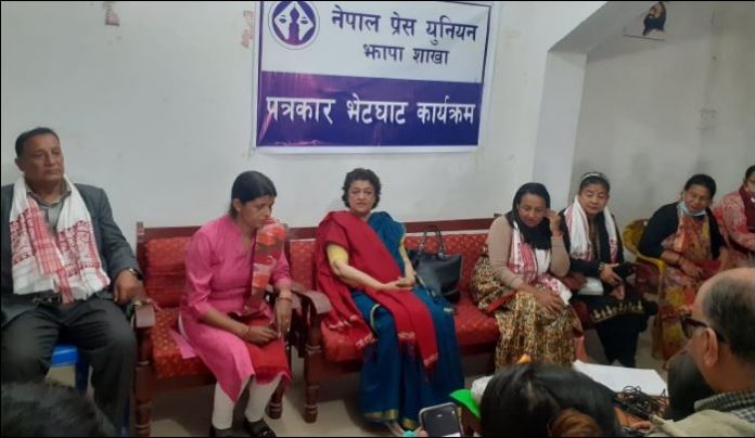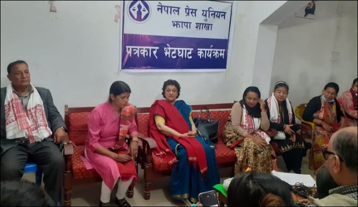 नेपाल प्रेस युनियन झापाका अध्यक्ष इन्दु पूर्वेलीको अध्यक्षतामा सम्पन्न पत्रकार भेटघाटमा स्वागत सल्लाहकार राजेन्द्र गौतम र सञ्चालन सहसचिव स्वस्तिका आचार्यले गर्नुभएको थियो ।