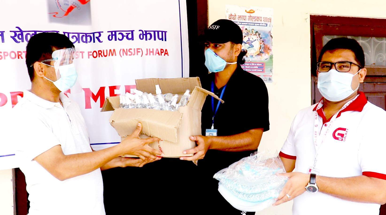 खेलकुद पत्रकार मञ्चको तर्फबाट अध्यक्ष हिमाल खरेल, कोषाध्यक्ष राजु पौडेल र सल्लाहकार इन्द्रजित मुखियाले पत्रकार महासंघ झापाका अध्यक्ष एकराज गिरीलाई सामग्री हस्तान्तरण गरेका हुन् ।