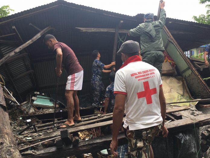 विगत ३/४ दिनयता निरन्तर पानी परेकासंगै माटो गलेका कारण घर भत्किंदा घरभित्र पुरिएका सामग्री नेपाल रेडक्रसकर्मी र सुरक्षाकर्मीको टोलीले निकाल्ने काम गरेको नेपाल रेडक्रस सोसाइटी झापाका सभापति लोकराज ढकालले जानकारी दिनुभयो । घर भत्किएर विस्थापित श्रेष्ठ परिवारलाई छिमेकीको घरमा राखिएको छ भने रेडक्रस सोसाइटीले आइतबार राहत प्रदान गर्ने तयारी गरेको बताइएको छ ।
